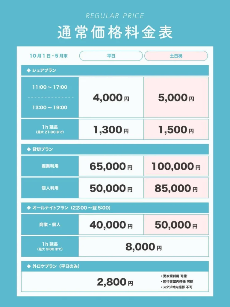 通常(10月1日~5月末)料金